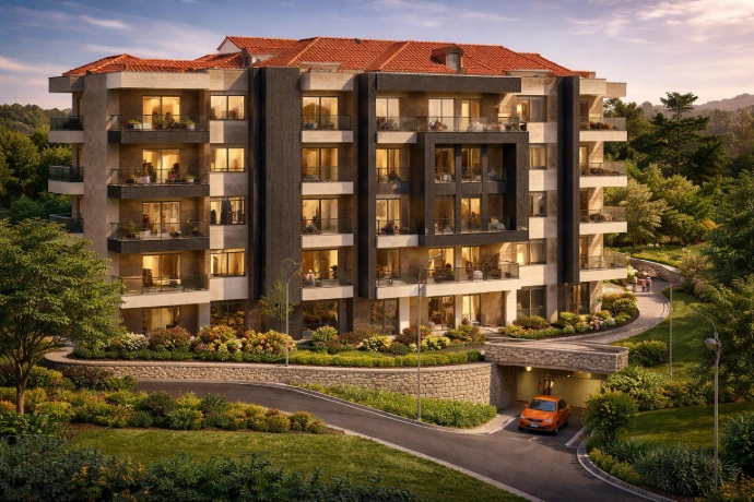 Contemporary residential building offering bright interiors, premium exterior materials, and spacious balconies perfect for everyday relaxation.